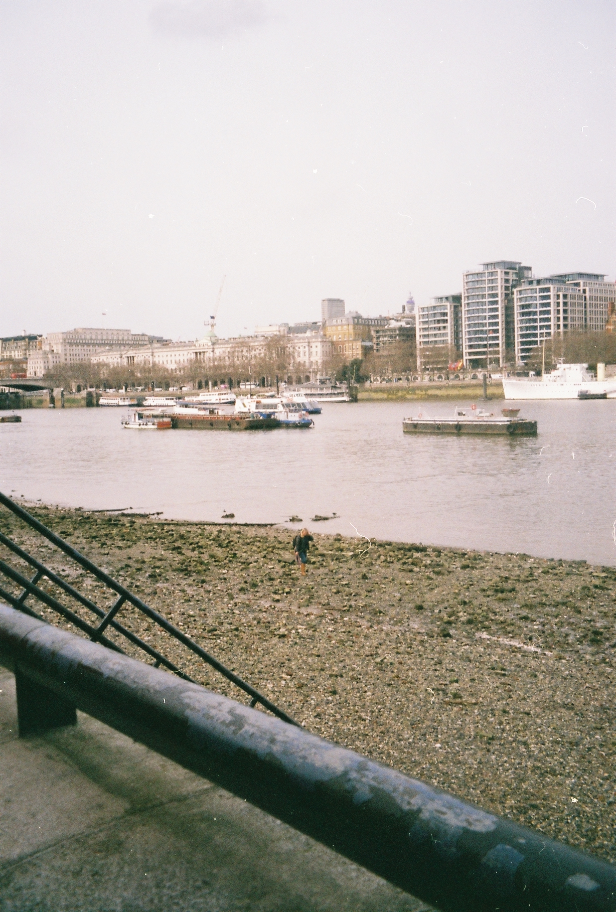I don’t love going to work everyday. It’s fine, but it involves an hour long bus drive and then a typically chaotic stroll along South Bank simultaneously trying to dodge joggers running at you full speed and not bump into tourists who stop in the middle of the path to look up directions on their phones. Most of these photos were taken on the day earlier this year when it snowed spontaneously out of nowhere. It was cold and miserable. No one was around. The usual jovial spirit the area always seems to have was gone and it suddenly felt isolated like an old tourist trap on the coast, abandoned and waiting for life. I wanted to capture this moment. A neon HOTEL sign like a beacon in the rain. One lone woman in her winter coat trudging along the beach. My favourite point of South Bank where you can split London in half; one side ancient architecture, one side modern skyscrapers. The milk carton is from a different day but a similar time. I walked past a stream of milk on my way to the bus and stopped to capture it. It sits outside a pub, next to cars and beer barrels where the only spilt liquid you’d expect would be petrol or alcohol or bodily fluids but instead its whole milk. I still don’t know why they were there but I like the absurdity of it.